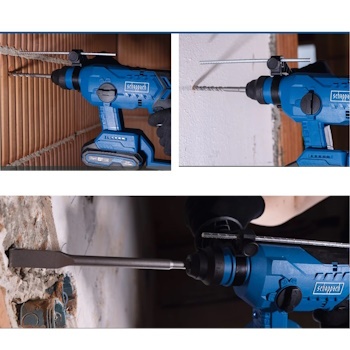 Snažna Scheppach akumulatorska bušilica BC-RHD230-X sa praktičnom funkcijom 4-u-1 idealna je za obradu kamena, betona, pločica ili cigle. Jedna od četiri funkcije se može odabrati brzo i bez alata pomoću centralnog prekidača za biranje: bušenje bez udarca, čekićno bušenje sa aktiviranim udarnim mehanizmom, dletenje sa aktiviranim udarnim mehanizmom i zaustavljanjem rotacije, bezstepeno poravnanje dleta. Dodatna ručka se može rotirati za 360°. Graničnik dubine od robusnog metala za ciljano i ponovljivo bušenje. SDS-Plus stezna glava za bušenje omogućava bušenje bez alata promene. Centralni prekidač za brzo prebacivanje između funkcija bez alata. Ergonomski i kompaktan dizajn sa mekom ručkom za visoku udobnost rada. Integrisano LED radno svetlo sa 10 sekundi produženog vremena osvetljenja nakon isključivanja osigurava optimalno osvetljenje radnog područja. GARANCIJA 5+5 GODINA Karakteristike: Tip baterije: Li-Ion. Napon baterije iznosi: 20 V. Broj udaraca i snaga udarca: 5500 u/min | 2.2 J. Broj obrtaja – slobodan hod: 1400 o/min. Stezna glava: SDS-PLUS. Prečnik bušenja za drvo: 27 mm. Prečnik bušenja za čelik: 13 mm. Prečnik bušenja za beton: 24 mm. Obim isporuke: Aku udarna čekić bušilica 2 x dleta i 3 x burgije (8, 9 i 10 mm)