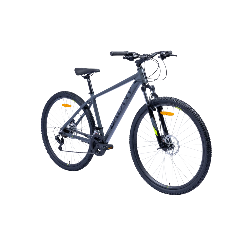 Spoj laganog aluminijumskog rama i vrhunske SHIMANO opreme čine bicikl GALAXY ATLAS 29″/21 savršenim MTB izborom. Robustan, odiše snagom i lakoćom koja se oseti svakim okretom pedale. Prednja vila MODE N721G sa amortizerima vožnju po neravnim terenima čini prijatnom, dok RADIUS mehaničke disk kočnice obezbeđuju sigurno i lako zaustavljanje u svakoj situaciji. Za posebnu vožnje pobrinuće se kombinovane ručice kočnice i menjača Shimano Tourney ST-EF41 3/7 koje odlikuje velika brzina menjanja brzina i lakoća potiska ručice kočnice. Za potpun užitak vrhunske vožnje bicikl je opremljen odličnim prednjim menjačem SHIMANO FD-TY300 i zadnjim menjačem SHIMANO Tourney RD-TY200-GS, dok će se za dugovečnost ove adrenalinske vožnje pobrinuti račna SHIMANO Tourney MF-TZ500-7.