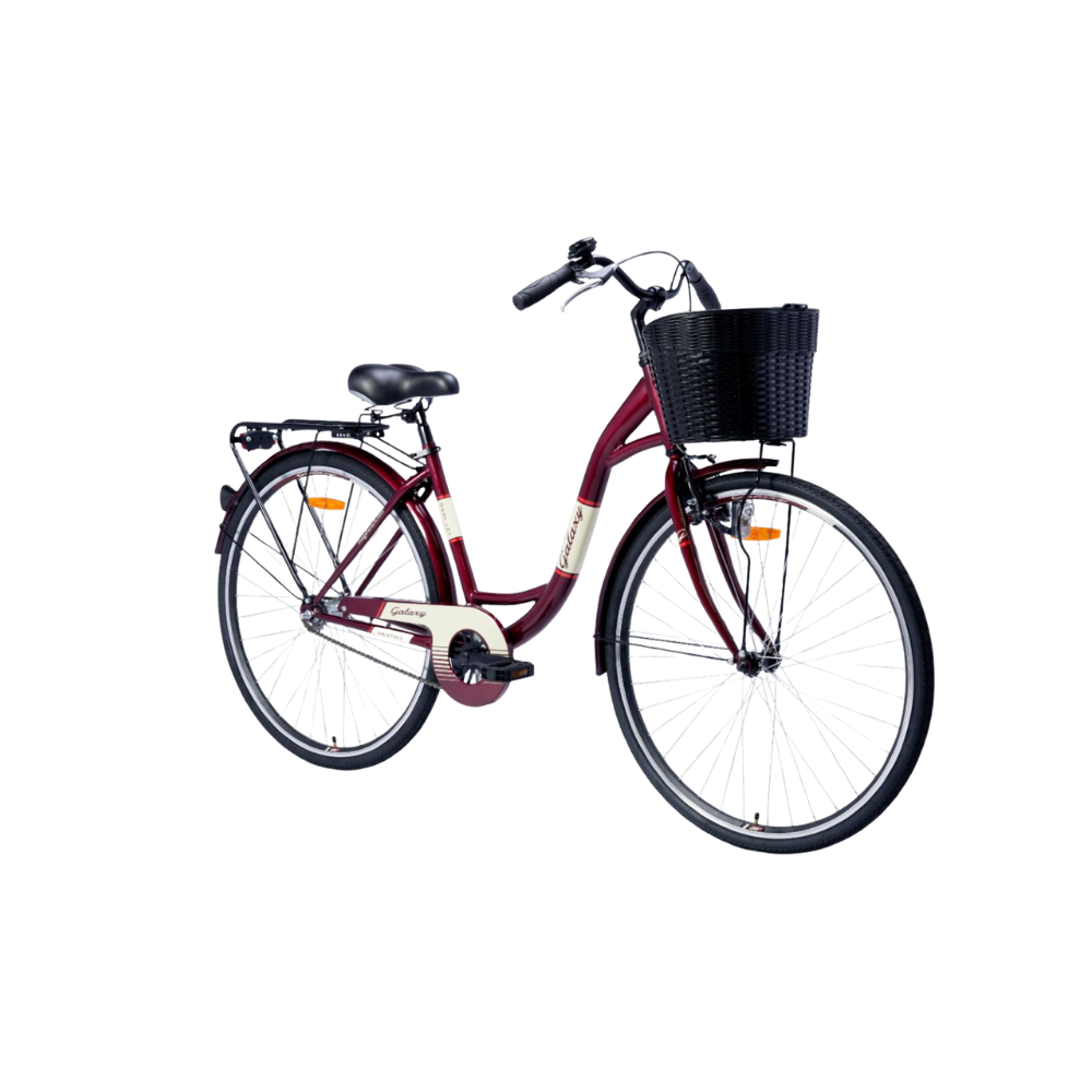 Bicikl GALAXY DESTINY 28″ je klasičan gradski bicikl jednostavnog elegantnog dizajna. Stvoren za laganu vožnju i uživanje u njoj. Ram bicikla GALAXY DESTINY 28″ je dizajniran tako da omogući lako prebacivanje noge preko rama što ovaj bicikl čini odličnim izborom za vožnju u suknji ali i za starije ljude kojima je visina rama veoma važna. Elegantni oblik volana na bicikli GALAXY DESTINY 28″ obezbeđuje veoma prijatnu vožnju uz minimalno opterećenje u laktovima što upravljanje volanom i vožnju bicikla čini izuzetno prijatnim. Prednja kočnica je V-brake, dok je zadnja kontra što zaustavljanje čini jednostavnim. Na volanu se nalazi praktična plastična korpa nosivosti do 10 kg. Bicikl GALAXY DESTINY 28″ je opremljen prednjim i zadnjim svetlom na baterije kao i jednostavnim zvoncetom na okid.