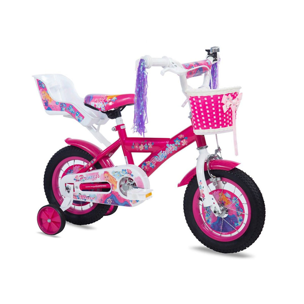Bicikl dečiji PRINCESS 12″ je za decu koja tek uče da voze bicikl. Prečnik točka iznosi 12 inča. Bicikl ima pomoćne točkiće koji pomažu detetu da održava ravnotežu tokom učenja vožnje i omogućavaju mu da stekne neophodno samopouzdanje kako bi dete moglo samostalno da vozi. Opremljen korpom postavljenom na upravljač. Podesiv upravljač i sedište omogućavaju da se bicikl podesi po visini deteta.