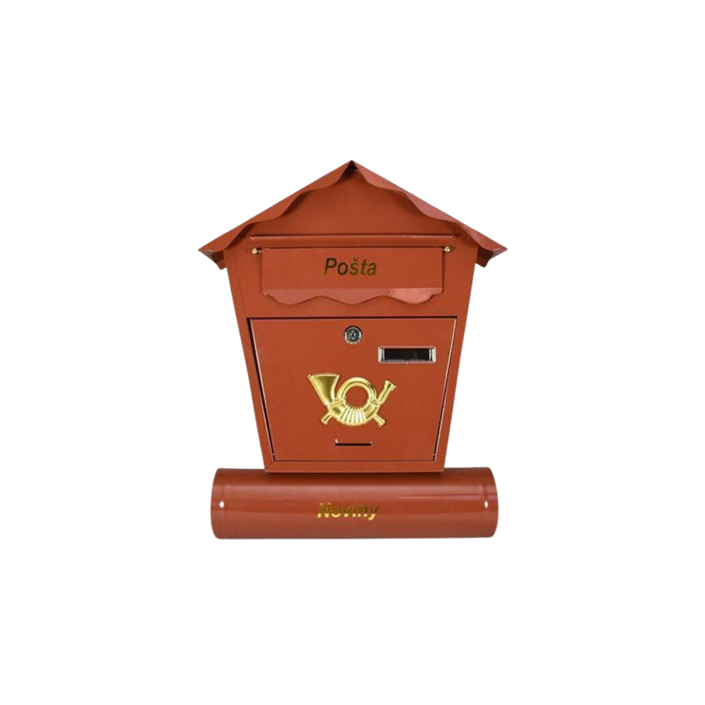 Sanduče je crveno braon boje.