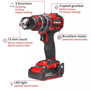 Zadovoljite sve svoje potrebe za bušenjem i zavrtanjem sa Einhell Professional akumulatorskom udarnom bušilicom TP-CD 18/60 Li-i BL.
