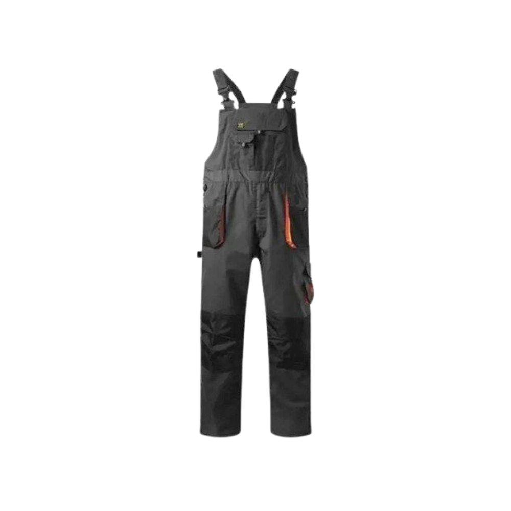 Radni polukombinezon Thor u crno narandzastoj, sa podesivim tregerima sa plastičnim kopčama, ojačanja od 600D poliestera na mestima izloženim većem habanju džepovi, kolena. Imaju džepove za umetanje štitnika za kolena, plastron sa tri džepa, dva prednja džepa, dva pozadi i dva sa strane, reflektivni detalji, praktični odeljci za alat, gajka za čekić, plastična alka za ključeve, pojas sa lastišem i dugmićima za dodatnu udobnost, etiketa za lične podatke sa unutrašnje strane, trostruki štepovi i ringlice, kao ojačanje.