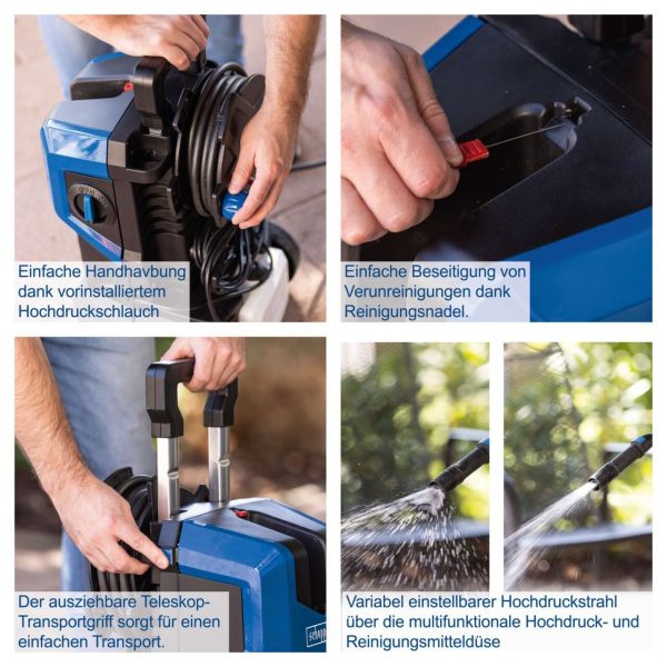 Scheppach HCE3000 – Električni perač visokog pritiska za domaću i poluprofesionalnu upotrebu Scheppach HCE3000 je moćan električni perač visokog pritiska, idealan za uklanjanje tvrdokornih nečistoća sa staza, terasa, automobila i nameštaja na otvorenom. Sa snažnim motorom od 2400 W i maksimalnim pritiskom od 180 bara, pruža efikasno i brzo čišćenje. HCE3000 koristi aluminijumsku pumpu otpornu na koroziju, osiguravajući dug vek trajanja. Zahvaljujući Quick-Connect sistemu, zamena dodataka je brza i jednostavna. Ergonomski pištolj za pritisak omogućava lako rukovanje, dok integrisano LED očitavanje pritiska i sigurnosni mehanizam za decu pružaju dodatnu sigurnost. Podesivi mlaz visokog pritiska preko multifunkcionalne dizne omogućava prilagođavanje za različite vrste površina. Uz protok vode od 480 L/h, čišćenje je brzo i efikasno, dok funkcija usisavanja omogućava upotrebu spoljašnjih izvora vode (potrebna dodatna oprema). Uređaj dolazi sa 800 ml rezervoarom za deterdžent, turbo diznom i rotirajućom četkom za temeljno čišćenje. Veliki transportni točkovi i teleskopska ručka olakšavaju prenos i skladištenje. Scheppach HCE3000 je savršeno rešenje za kućne i profesionalne zadatke čišćenja, pružajući snagu, praktičnost i dugotrajnu pouzdanost. Karakteristike proizvoda Snažan motor od 2400 W Maksimalni pritisak od 180 bara za efikasno čišćenje. Visok protok vode: 480 L/h za brzo uklanjanje prljavštine. Ergonomski pištolj za pritisak: Sa prikazom pritiska i sigurnosnim mehanizmom za decu. Quick-Connect sistem: Jednostavna i brza zamena dodataka. Integrisana kalem za crevo: Olakšava rad i skladištenje visokopritisnog creva. Robusna aluminijumska pumpa: Otporna na koroziju za dugotrajnu upotrebu. Automatski sistem uključivanja i isključivanja: Motor radi samo pri pritisku na pištolj, štedeći energiju i vodu. Podesivi visokopritisni mlaz: Multifunkcionalna dizna omogućava fleksibilnu primenu. Funkcija usisavanja: Omogućava korišćenje spoljašnjih izvora vode (dodatna oprema potrebna). Integrisani rezervoar za deterdžent: Kapaciteta 800 ml za lakše čišćenje uz deterdžent. Veliki transportni točkovi i teleskopska ručka: Olakšavaju prenos uređaja Težina 10 kg