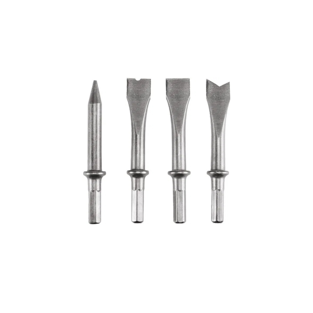 Set nastavaka za Pneumatsko čekić dleto 4 dela uključuje: 1 špic, 1 ravno dleto, 2 nazubljena