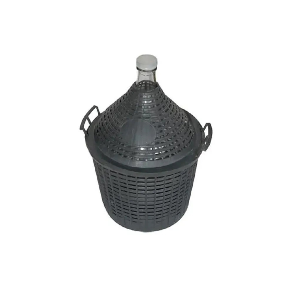 Stakleni balon sa plastičnim omotačem i ručkama za lakše prenošenje.