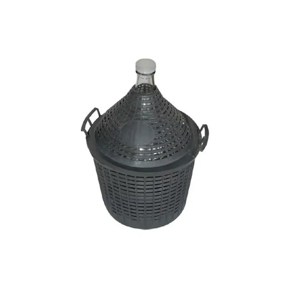 Stakleni balon sa plastičnim omotačem i ručkama za lakše prenošenje.