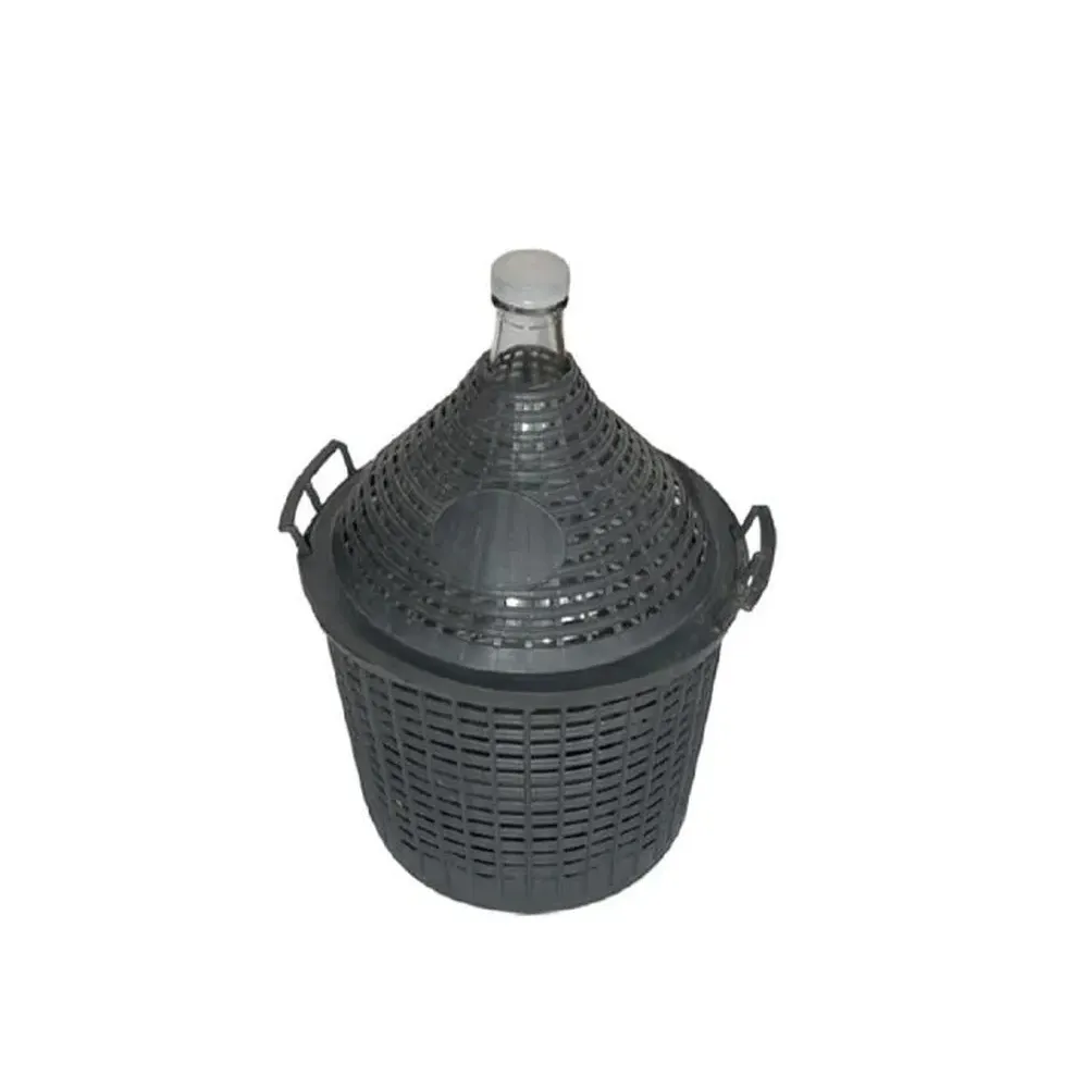 Stakleni balon sa plastičnim omotačem i ručkama za lakše prenošenje.