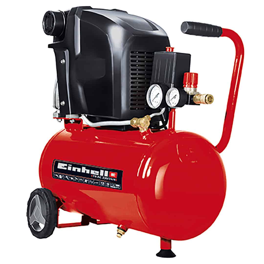 Kompresor TE-AC 230/24 je efikasan i robustan uređaj velike izdržljivosti za visoke zahteve. Visokokvalitetne komponente i podmazivanje uljem osiguravaju dug radni vek. Nivo ulja se može pregledati vizuelno kroz kontrolni prozor. Radni pritisak do 8 bara može se podesiti na mnoge primene pomoću reduktora pritiska. Dovoljne rezerve komprimovanog vazduha za svaku primenu su spremne za 24 litarski rezervoar.