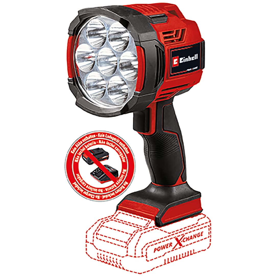 Akumulatorska lampa Einhell TE-CL 18/2500 LiAC – Solo sa 2.500 lumena zaista obasjava mrak. Član je Power-X-Change porodice što znači da svaka punjiva baterija iz ove sistemske porodice može da se koristi u kombinaciji sa ovom lampom. Ova praktična akumulatorska lampa je korisna ne samo za loše osvetljena mesta kao što su podrumi, gradilišta, potkrovlja i tamni ćoškovi radionice. Ova akumulatorska lampa je praktična i za nestanak struje ili kampovanje, noćno pešačenje, šetnje nakon zalaska sunca, kao i za druge aktivnosti na otvorenom, kad god ne možete da imate izvor svetla sa strujne mreže. Zahvaljujući sedam dugotrajnih, jarkih LED svetala sa ukupno 2.500 lumena svetlosnog fluksa i 6.500 K(elvina) temperature boje, ova akumulatorska lampa ne samo da je svetlija, već i robusnija i otpornija na udare u poređenju sa uporedivom halogenom lampom. Dva nivoa jačine svetlosti pružaju idealno osvetljenje. Postoji navoj za stativ od 1/4 inča koji omogućava pričvršćivanje lampe na stativ. Za lakše rukovanje i veću fleksibilnost pri upotrebi, ova lampa ima tanak, lagani dizajn i ergonomsku ručku sa mekim rukohvatom. Ovaj proizvod dolazi bez baterije i punjača iz Power X-Change serije, koji su dostupni posebno, na primer kao praktični starter set.